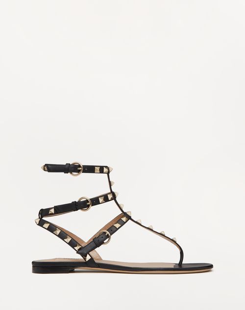 Sandalo Valentino Garavani Rockstud in vitello- Borchie finitura platino- Cinturini regolabili- Altezza tacco 5mm/0.25''- Made in Italy