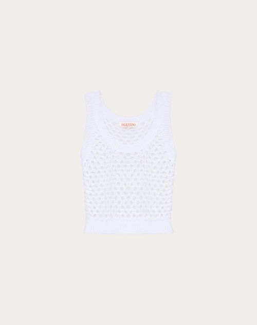 Top in Viscosa, Lurex e Paillettes - Viscosa, Lurex e Paillettes (69%Poliestere, 22%Poliammide, 7%Viscosa, 2%Fibra Metallica) - Lunghezza 47 cm da punto spalla per la taglia S IT - La modella è alta 176 cm e indossa una taglia S IT - Made in ItalyIl look è completato con scarpe Valentino Garavani Escape Collection 2024.