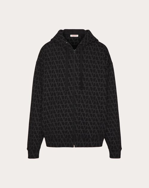 Felpa Valentino in cotone con cappuccio, zip e stampa Toile Iconographe all over- Loose fit- Stampa Toile Iconographe all over- Finiture elasticizzate a coste- Cappuccio con coulisse- Chiusura con zip- Due tasche laterali- Composizione: 100% Cotone- Lunghezza: 72 cm dall'attaccatura posteriore del collo in taglia M- Il modello è alto 187 cm e indossa una taglia M- Made in ItalyIl look è completato con scarpe Valentino Garavani Freedots.