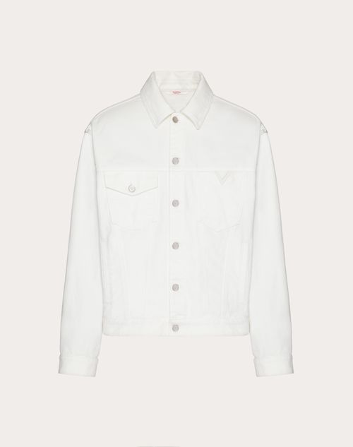Giacca Valentino in denim con V Detail gommata- Regular fit- V Detail gommata applicata su tasca sul petto lato sinistro indossato- Etichetta Valentino sul retro- Chiusura con bottoni- Due tasche laterali- Due tasche con pattina sul petto- Composizione: 100% Cotone- Lunghezza: 69 cm dall'attaccatura posteriore del collo in taglia 46 IT- Il modello è alto 187 cm e indossa una taglia 46 IT- Made in ItalyIl look è completato con scarpe Valentino Garavani Rockstud.