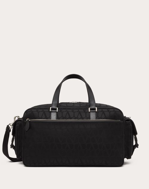 Duffle Toile Iconographe Valentino Garavani in tessuto tecnico Toile Iconographe con dettagli in pelle. La borsa può essere portata a mano o indossata a tracolla grazie alla tracolla removibile.- Dettagli in pelle di vitello- Metallerie finitura palladio- Chiusura con zip- Esterno: due tasche laterali con flap e chiusura con tuc Vlogo- Interno: una tasca piatta con zip e una tasca a parete- Doppi manici in pelle- Tracolla regolabile e removibile in tessuto- Altezza (luce) manico: 18 cm- Altezza (luce) tracolla: 55 cm- Logo Valentino Garavani- Dimensioni: W45 x H27 x D18 cm- Peso: 1,8 kg- Made in Italy