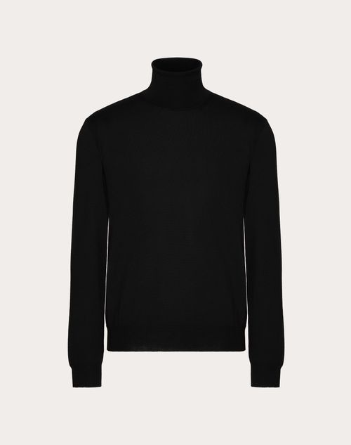 Maglione collo alto Valentino in lana con ricamo VLogo Signature- Regular fit- Finezza: 18- Ricamo VLogo Signature sul fondo- Composizione: 100% Lana Vergine- Lunghezza: 66 cm dall'attaccatura posteriore del collo in taglia M- Il modello è alto 187 cm e indossa una taglia M- Made in ItalyIl look è completato con una borsa Valentino Garavani The Bold Edition e scarpe Valentino Garavani Valentino Garavani Gentleglam.
