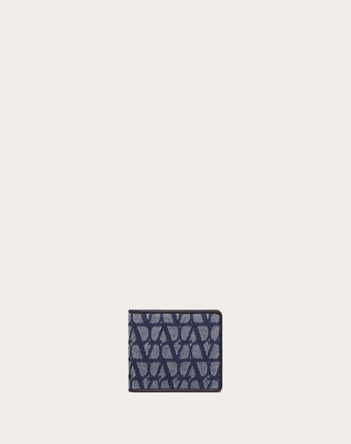 Portafoglio Toile Iconographe Valentino Garavani in Tessuto Jacquard Toile Iconographe effetto Denim con dettagli in pelle.- Dettagli in pelle di Vitello- Otto scomparti per carte- Due scomparti per banconote- Logo Valentino Garavani- Dimensioni: W11 xH10 x D2 cm- Made in Italy
