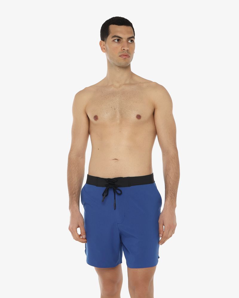 Shorts dalla linea dritta realizzato in tessuto elasticizzato. Regolazone con lacci sul davanti, tasche laterali e tasca incollata sul dietro. slip in rete all'interno